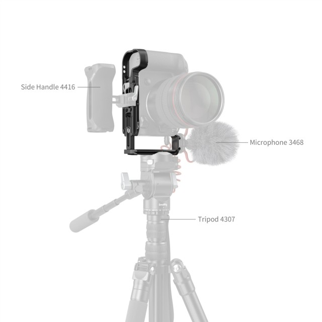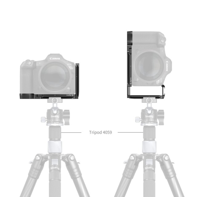 La placa de montaje en forma de L SmallRig para Canon EOS R5 Mark II 4983 está diseñada para facilitar el cambio rápido entre la orientación horizontal y vertical, al tiempo que mejora el agarre de la cámara. La placa de montaje en forma de L se fija firmemente a la cámara mediante un tornillo de 1/4"-20 en la base y dos bloques de posicionamiento a los lados que evitan el desplazamiento, y está equipada con almohadillas de silicona integradas que protegen la cámara de arañazos.