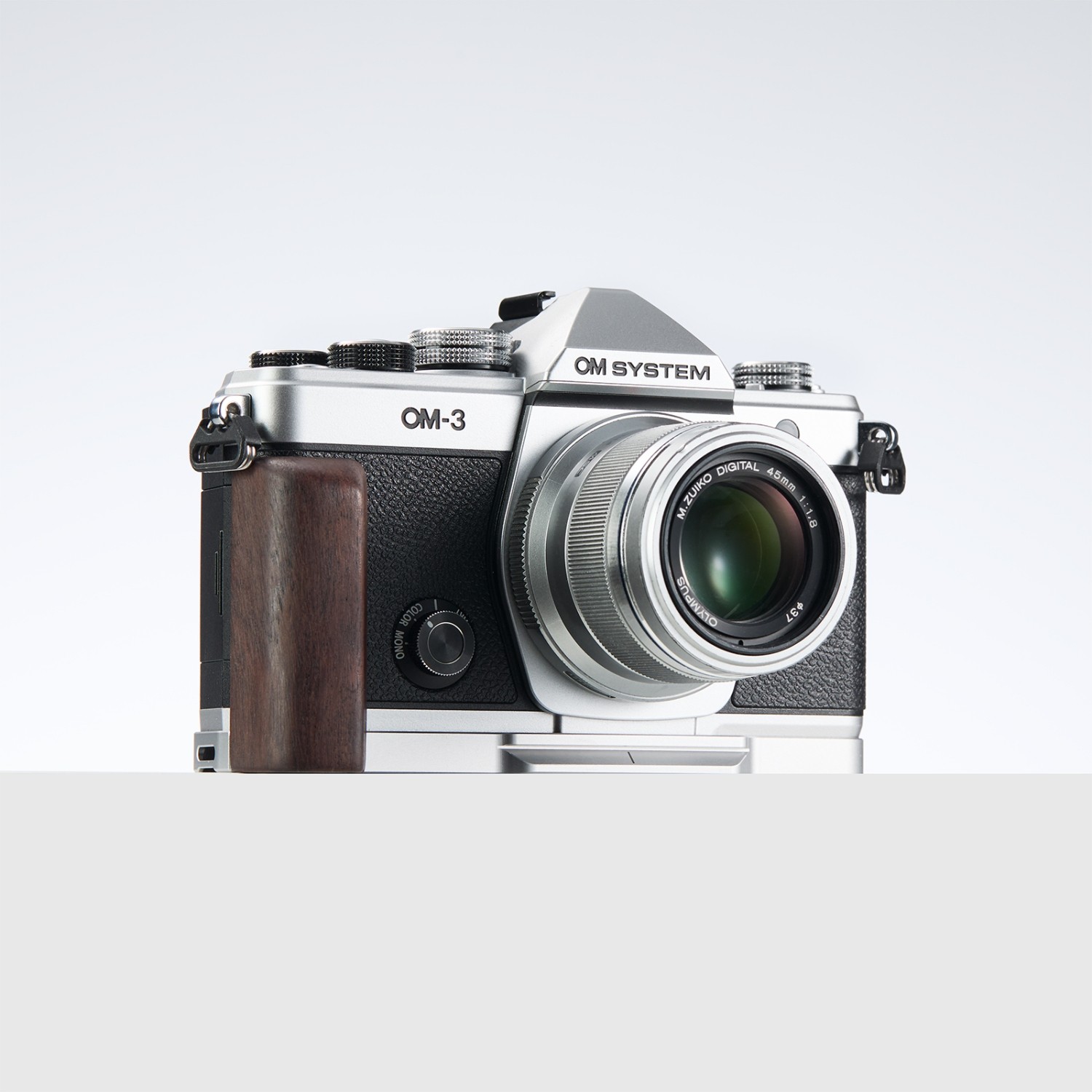 El mango tiene una forma ergonómica para reducir la fatiga durante un uso prolongado y, al mismo tiempo, proporcionar un excelente agarre. Está fabricado en madera maciza, lo que aporta a la cámara no solo una textura cálida y natural, sino también un marcado encanto retro.