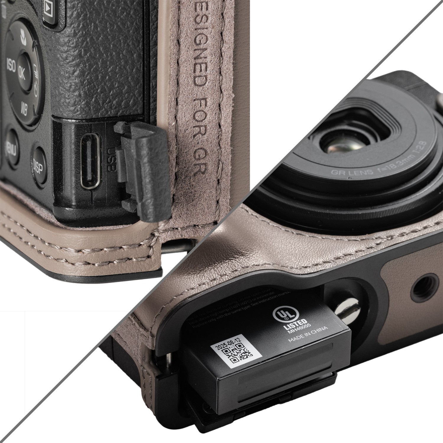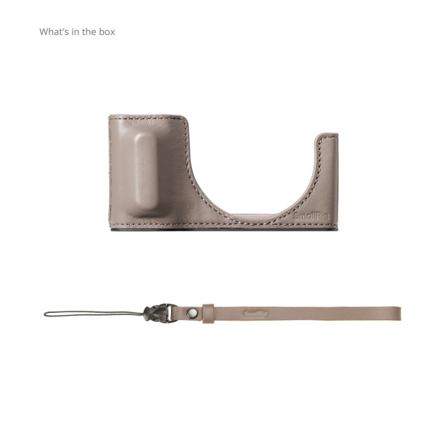 La funda de cuero SmallRig 5677 con correa para la muñeca para la Ricoh GR IV (gris) ofrece una protección elegante y un mejor manejo. Combina cuero de primera calidad y una estructura de aluminio con acceso total a los controles de la cámara, la batería y la rosca para trípode.
