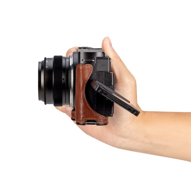 La funda de cuero SmallRig para la Panasonic LUMIX S9 4703 está diseñada para proteger la cámara y, al mismo tiempo, realzar su encanto vintage y su agarre. Cuenta con un asa de madera integrada para mejorar la firmeza del agarre con los dedos. El material resistente y transpirable de la funda, fabricada en piel de grano fino, realza la estética retro y la sensación de la cámara, mientras que su forro de ante garantiza la protección contra arañazos. Gracias al tornillo de 1/4"-20 para pulgada integrado en la base, la funda se fija directamente a la cámara sin necesidad de herramientas adicionales. La funda permite un acceso sin obstáculos a las funciones clave de la cámara, como el compartimento de la batería, la pantalla LCD, la ranura para tarjetas, etc. El marco integrado de aluminio aeronáutico garantiza una sujeción firme y ofrece protección contra los golpes. La parte inferior está equipada con un orificio roscado de 1/4"-20, lo que permite el montaje directo en un trípode sin necesidad de desmontar la mitad de la funda.