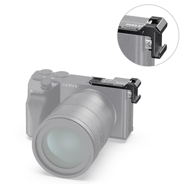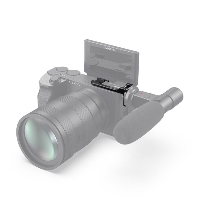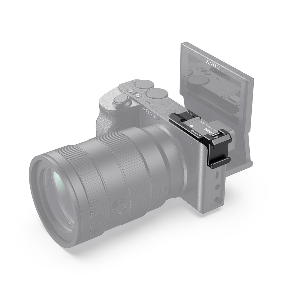 La placa SmallRig para reubicar la zapata en el lado izquierdo de la cámara Sony a6600 (BUC2497) está diseñada para trasladar la zapata de la cámara desde la parte superior al lado izquierdo, con el fin de poder acoplar un micrófono o una luz sin que interfiera con la pantalla abatible de la Sony A6600. El adaptador se instala en el soporte de la base de la cámara y en el orificio para la correa mediante un tornillo de 2,5 mm de diámetro, para asegurarlo y evitar que se doble. En la parte inferior cuenta con una almohadilla de goma que evita que se raye. En el lateral del adaptador hay un orificio para la correa de mano o de hombro. El adaptador con pedal es especialmente útil al grabar desde la parte frontal de la cámara para hacer vlogs o selfies.
