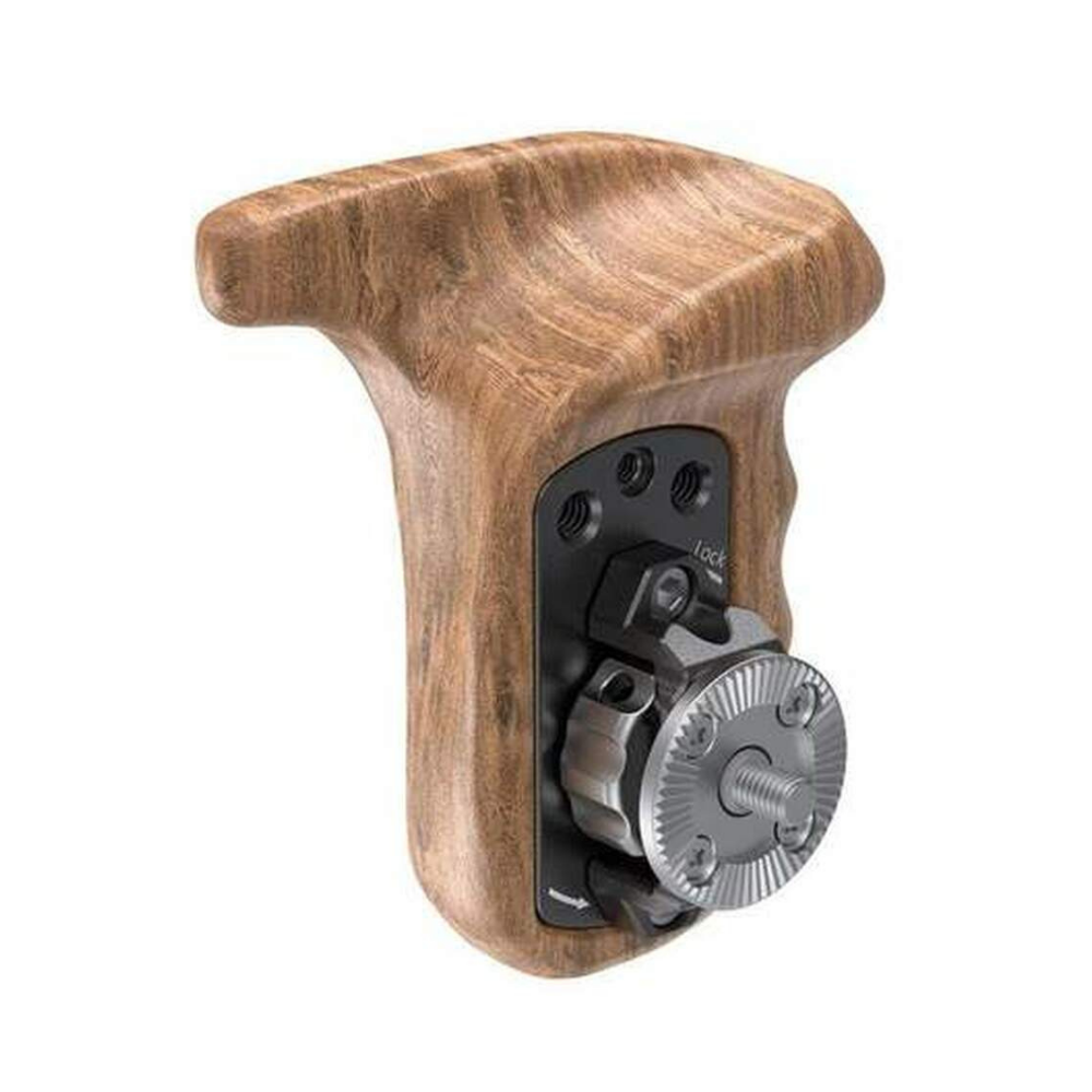 El agarre de madera SmallRig con rosca ARRI 1891 está diseñado para fijarse a cualquier sistema de cámara mediante una rosca ARRI con un rango de ajuste de 360°. El agarre se puede instalar en el lado izquierdo de la jaula, la placa y el brazo de la cámara con roseta ARRI para aumentar la estabilización; también funciona bien con cámaras como RED, URSA Mini, Sony FS7, etc. La roseta ARRI se puede ajustar hacia arriba y hacia abajo aflojando dos tornillos M4. La llave hexagonal situada en la parte inferior permite ajustar la altura y apretar el tornillo con el pulgar, además de ayudar a desmontar el agarre en cuestión de segundos. El tornillo central M6 se puede extraer para utilizarlo con un kit que requiera rosca interior. La combinación de madera y aluminio reduce el peso del agarre y funciona bien incluso a bajas temperaturas, lo que proporciona una experiencia de usuario de mayor calidad.
