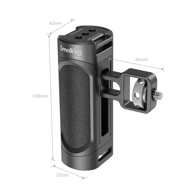 La ligera empuñadura lateral SmallRig para la jaula de smartphone 2772 está diseñada para adaptarse a la jaula de teléfono SmallRig y mejorar la comodidad de sujeción, lo que permite un agarre más firme y estable del teléfono. Es compatible con las jaulas SmallRig Pro para teléfonos móviles, como la 2775, la 2776, etc., y con las jaulas universales SmallRig, como la CPU2391B, la 2791, etc. La llave integrada se puede utilizar para ajustar la altura del asa y también para apretar el tornillo de fijación. En la parte superior cuenta con tres orificios estándar con rosca de 1/4-20 para acoplar accesorios. La empuñadura es compatible con la correa SmallRig PAC2456 para una fotografía a mano alzada más segura y estable. Pesa solo 120 g y cuenta con almohadillas de goma antideslizantes en la superficie que garantizan un agarre cómodo durante un uso prolongado.