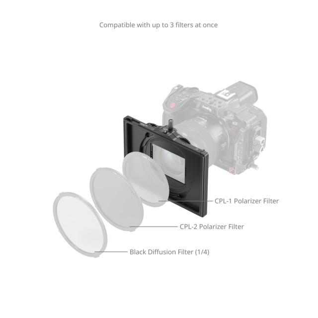 El matte box SmallRig LITE con soporte ajustable 4409 está diseñado para los entusiastas del vídeo y la fotografía. El diseño único de la caja mate con abrazadera ajustable está equipado con un sistema de bloqueo de tres puntos que permite un montaje y desmontaje rápidos presionando las palancas de presión a ambos lados de la abrazadera y el botón de bloqueo en la parte superior. Con un rango de sujeción ajustable de 67,0 a 82,0 mm (2,6 a 3,2 pulgadas), ofrece una amplia compatibilidad con las populares cámaras sin espejo y los objetivos de cine. Gracias a su diseño delgado, admite sin problemas filtros circulares y cuadrados y garantiza que no se produzca viñeteado con distancias focales ≥ 16 mm (para cámaras y objetivos de formato completo), lo que reduce eficazmente los reflejos en condiciones difíciles. Además, puede satisfacer sus diversas necesidades de filtros para la grabación de vídeo y la fotografía eligiendo entre los filtros opcionales CPL, ND (ID:4799), VND (ID:4649), el juego de filtros difusores negros (ID:4650) y el juego de filtros difusores blancos (ID:4652). Esta caja difusora cuenta con un diseño modular que facilita el montaje y desmontaje de los accesorios en tan solo 3 pasos. Su diseño elegante y ligero no solo agiliza el proceso, sino que también reduce el peso del equipo, lo que aumenta la comodidad al fotografiar.