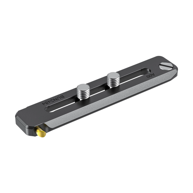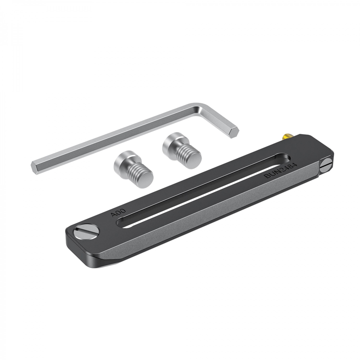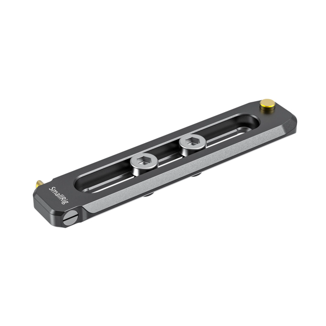 La barra NATO de perfil bajo SmallRig de 90 mm (BUN2484) se acopla al kit de la cámara mediante dos tornillos de 1/4''-20. Mide 90 mm de largo, es compatible con accesorios NATO, como abrazaderas, empuñaduras y soportes para monitores, y permite fijar y soltar rápidamente los componentes de la plataforma. Los pasadores de seguridad en ambos extremos evitan que los accesorios se salgan accidentalmente.