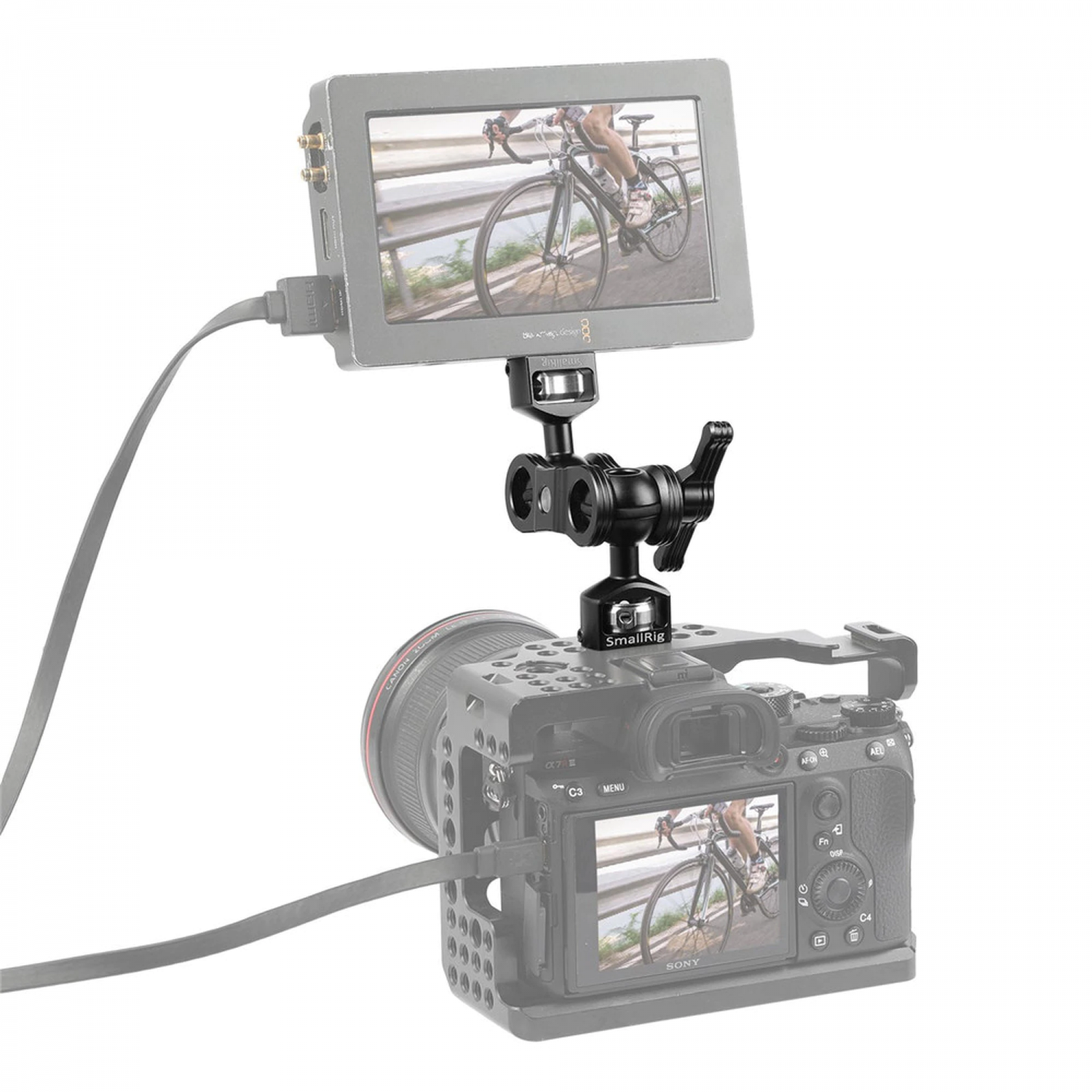 2. La rótula con tornillo de 1/4'' se puede utilizar para fijar directamente la jaula de la cámara o el monitor.