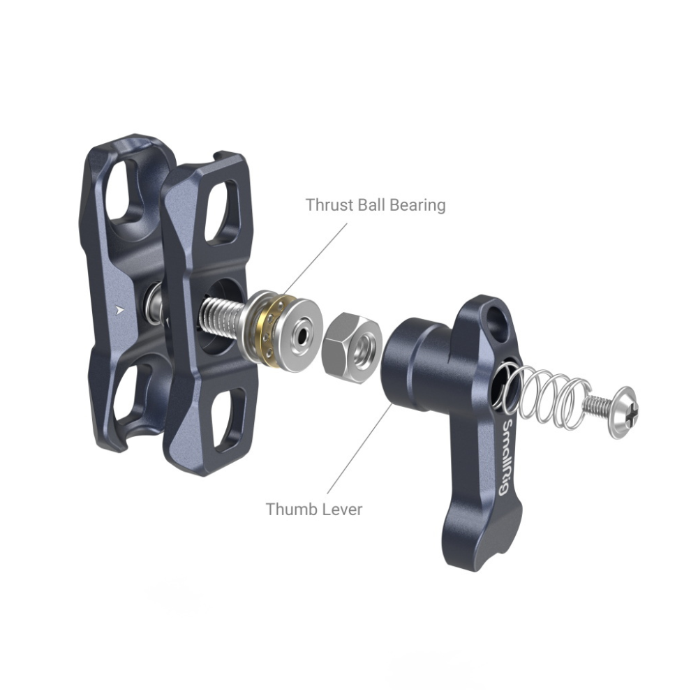El SmallRig Magic Arm con doble rótula (tornillo de 1/4”-20 y tornillo de fijación ARRI) 3874 es compacto y ligero. Cada rótula de 20 mm de diámetro está equipada con pasadores de separación que evitan la torsión. La palanca ajustable para el pulgar ayuda a fijar la rótula en el ángulo adecuado y se suministra con una pequeña llave magnética en la parte inferior, que sirve para apretar las ruedas para el pulgar. En ambos extremos de la abrazadera de la cabeza esférica hay muescas que proporcionan más espacio para un ajuste flexible de las cabezas esféricas y de los accesorios montados en ellas. Este artículo pesa solo 90 g, por lo que es fácil de transportar y almacenar.
