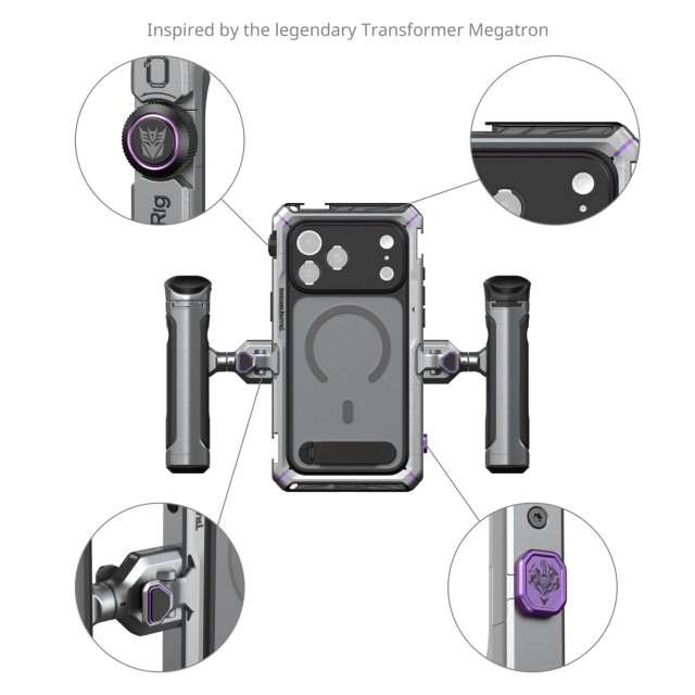 El kit de vídeo portátil doble SmallRig para iPhone 17 Pro (edición Megatron) 5585 es una solución profesional para grabar en mano con el móvil, diseñada específicamente para el iPhone 17 Pro, que facilita la grabación profesional de vídeos, las retransmisiones en directo y la producción de cortometrajes.