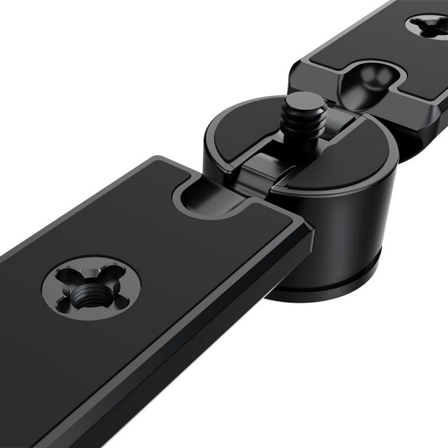 La placa de expansión para teléfonos móviles SmallRig APU2381 está diseñada para ofrecer más opciones de montaje de accesorios, como micrófonos, flashes Speedlite, baterías externas y trípodes, en un kit de teléfono móvil para fotografía, videografía, retransmisiones en directo y vlogs, entre otros. Seis orificios roscados de 1/4"-20 y dos zapatas permiten montar micrófonos y luces. Estos orificios roscados también cuentan con un diseño de posicionamiento que permite montar otros accesorios con el mismo diseño, como el soporte SmallRig para baterías externas portátiles BUB2378, utilizando un solo tornillo de 1/4"-20 sin giros indeseados. El tornillo de 1/4"-20 del centro permite fijar la placa al cabezal para teléfono BSP2380, y el orificio roscado de 1/4"-20 de la parte inferior permite acoplar un trípode. Está equipada con almohadillas de goma blanda que protegen los accesorios de arañazos. La placa en sí es plegable, lo que significa que puedes cerrarla fácilmente y llevártela contigo.