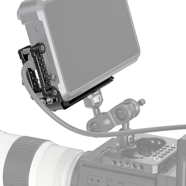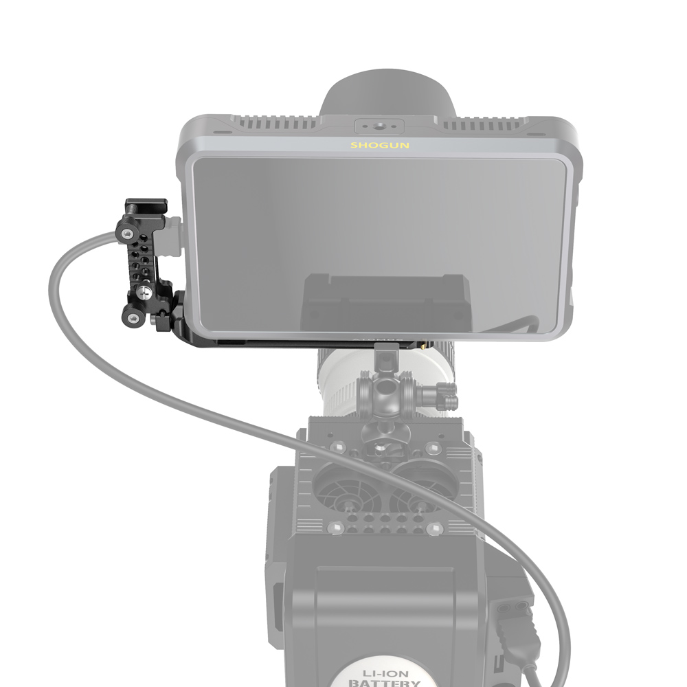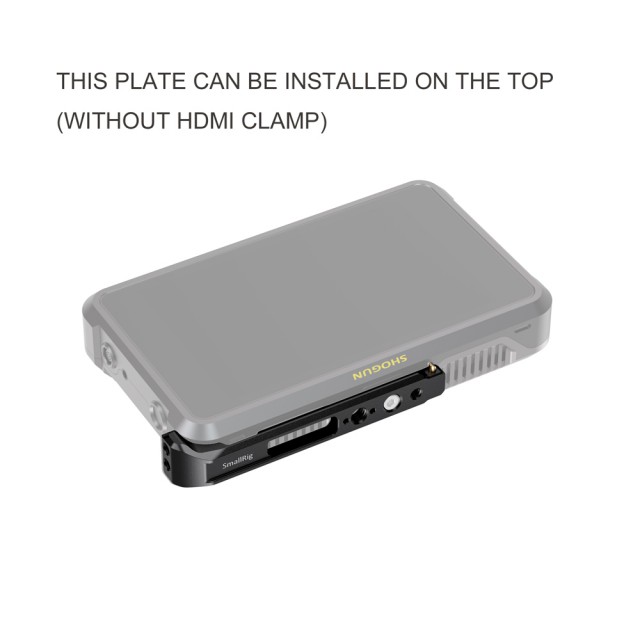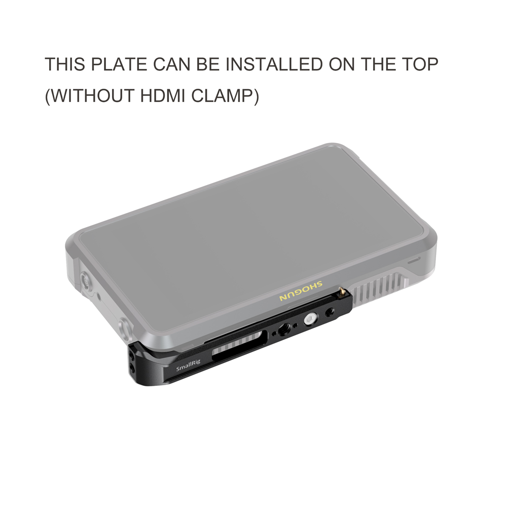 La placa de montaje SmallRig y la abrazadera para cable HDMI para Atomos Shogun 7 CMA2487 permiten fijar el monitor a la cámara de forma fácil y segura. La placa se fija a la parte inferior del monitor Shogun 7 mediante el tornillo de 1/4"-20 incluido, y los pasadores de posicionamiento de la placa encajan en los orificios de posicionamiento del monitor para evitar que la placa gire.