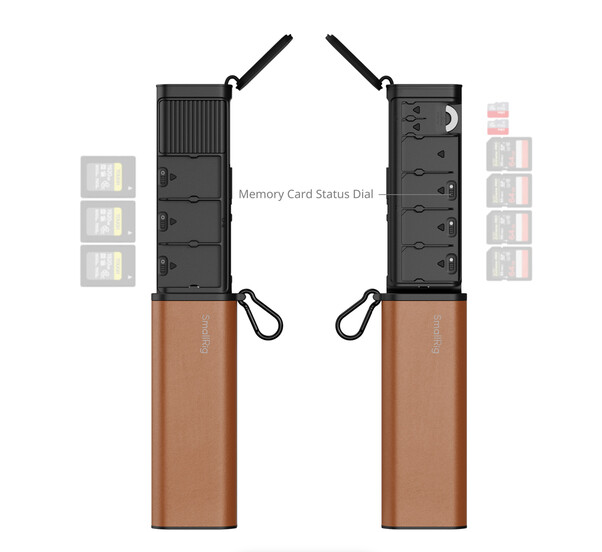 • Almacena 3 tarjetas CFexpress Tipo B, 4 SD y 2 microSD con clips de seguridad