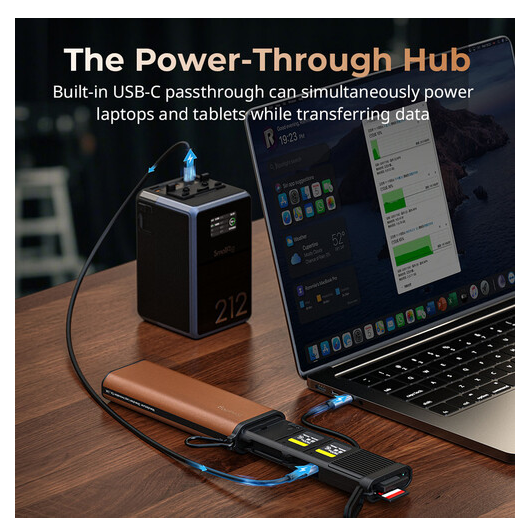 • Cable USB-C 3.2 Gen 2 integrado con puerto de carga pasante