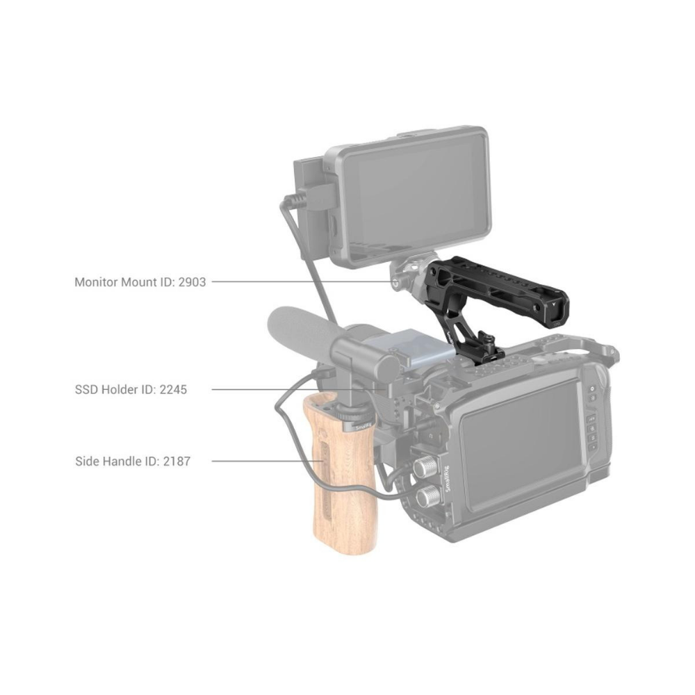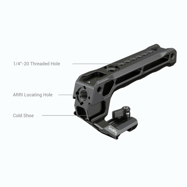 La empuñadura superior SmallRig NATO 3766 está diseñada para facilitar la grabación en ángulo bajo y reducir la carga sobre la mano. La empuñadura ergonómica con silicona antideslizante es cómoda y, gracias a su estructura hueca, pesa solo 124 g. Cuenta con 3 zapatas frontales y 2 traseras que permiten montar simultáneamente un micrófono, una luz LED, un monitor y otros accesorios. Los orificios de fijación ARRI de 3/8"-16 son compatibles con los soportes para monitor 2903 y 2348; los orificios roscados de 1/4"-20 son compatibles con el brazo 2070 Magic Arm para monitores y el mando a distancia 2924 para la grabación. Su abrazadera de fijación rápida NATO es compatible con todos los rieles NATO estándar.
