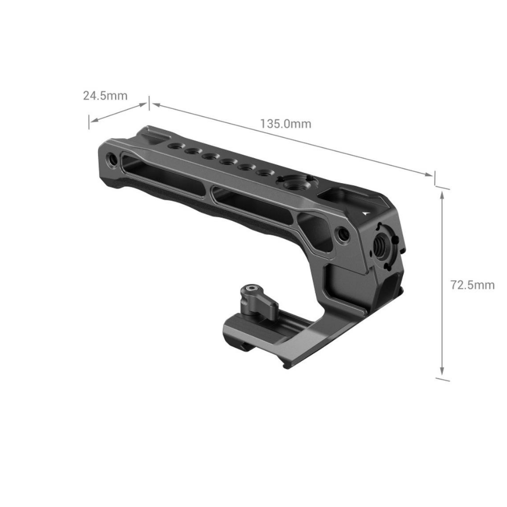 La empuñadura superior SmallRig NATO 3766 está diseñada para facilitar la grabación en ángulo bajo y reducir la carga sobre la mano. La empuñadura ergonómica con silicona antideslizante es cómoda y, gracias a su estructura hueca, pesa solo 124 g. Cuenta con 3 zapatas frontales y 2 traseras que permiten montar simultáneamente un micrófono, una luz LED, un monitor…