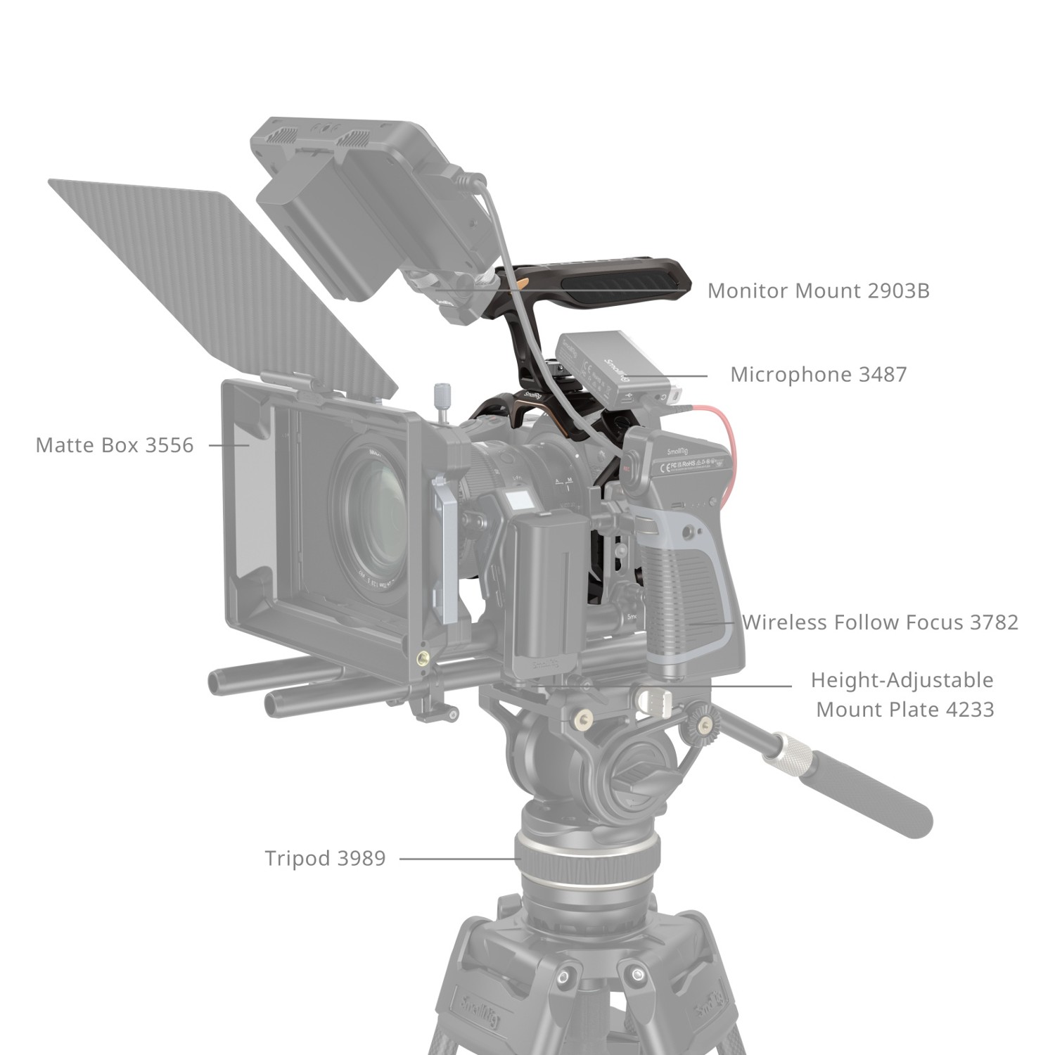 6. Está equipada con varias interfaces de expansión, como orificios roscados de 1/4"-20, orificios de posicionamiento de 1/4"-20, orificios roscados de 3/8"-16, orificios de posicionamiento ARRI, rieles NATO, soportes QD y orificios para correas de muñeca/hombro, lo que ofrece versatilidad para diversos escenarios de grabación.