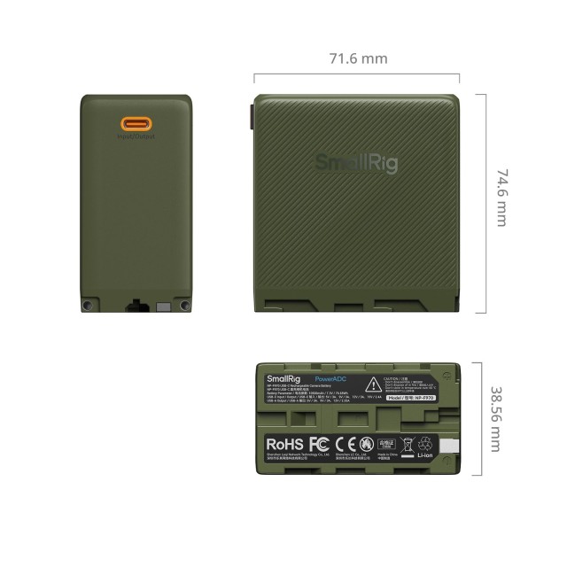 La SmallRig NP-F970 USB-C es una batería de alta capacidad, alto rendimiento, versátil e inteligente con carga USB y una capacidad de 10 500 mAh (76,65 Wh). Su gran capacidad garantiza una alimentación de larga duración que satisfará las necesidades energéticas durante la fotografía, la filmación, la iluminación, etc. El puerto principal situado en la parte inferior de la batería puede alimentar diversos dispositivos, como cámaras, luces LED de vídeo, monitores, sliders motorizados y otros. También está equipada con un puerto USB-C y un puerto USB-A, lo que permite cargar o alimentar otros dispositivos, como teléfonos inteligentes, tabletas, etc. El puerto USB-C funciona tanto como entrada como salida y su consumo máximo es de 36 W. La carga de la batería mediante el puerto USB-C dura solo 3,5 horas, lo que permite una creación eficiente. El puerto USB-A proporciona una potencia de salida máxima de 27 W. Los puertos USB-C y USB-A cuentan con circuitos paralelos, lo que permite la carga o alimentación rápida simultánea de dos dispositivos. Esta batería también está equipada con botones táctiles y una pantalla con indicador del nivel de carga, que proporciona información precisa sobre el estado de la batería. Estas baterías se caracterizan por una combinación de tecnología de vanguardia y elementos de diseño elegantes, y están disponibles en varios colores. Además, esta batería cuenta con celdas de alta calidad y chips de control inteligentes, así como funciones de protección para garantizar la máxima seguridad operativa.