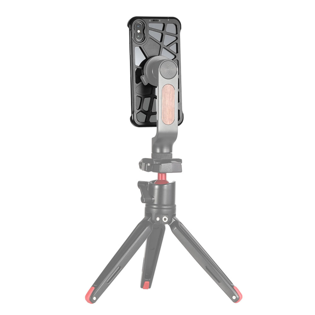 La carcasa para teléfono móvil CPA2204 SmallRig Pocket iPhone X/XS está diseñada para proteger tu iPhone y ofrecer una solución de montaje universal que permite acoplar otros accesorios para la fotografía y la grabación de vídeo con el móvil, retransmisiones en directo, entrevistas, vlogs, etc. Cuenta con un interruptor en la parte superior que garantiza un montaje y desmontaje rápido del teléfono. Su montura para objetivos con rosca de 17 mm y el adaptador adicional Moment permiten acoplar objetivos de 17 mm o Moment. Las almohadillas de goma integradas ayudan a amortiguar los golpes y evitan que se raye el teléfono. El diseño en forma de araña, pensado para reducir el peso y facilitar la refrigeración del teléfono móvil, evita los botones laterales y las interfaces, así como la zona de la antena, para evitar el riesgo de interferencias en la señal. La montura de bayoneta especialmente diseñada en la parte trasera permite acoplar el cabezal SmallRig para teléfonos móviles BSP2380 para fijarlo a un trípode y, a continuación, conectar un micrófono mediante el soporte SmallRig Cold Shoe Mount para el cabezal de teléfono móvil BUC2369 o varios accesorios, como un micrófono, un LED o un cargador portátil, mediante la placa de expansión SmallRig para teléfonos móviles APU2381. La jaula en sí es ligera y compacta, y también se puede utilizar como funda protectora.