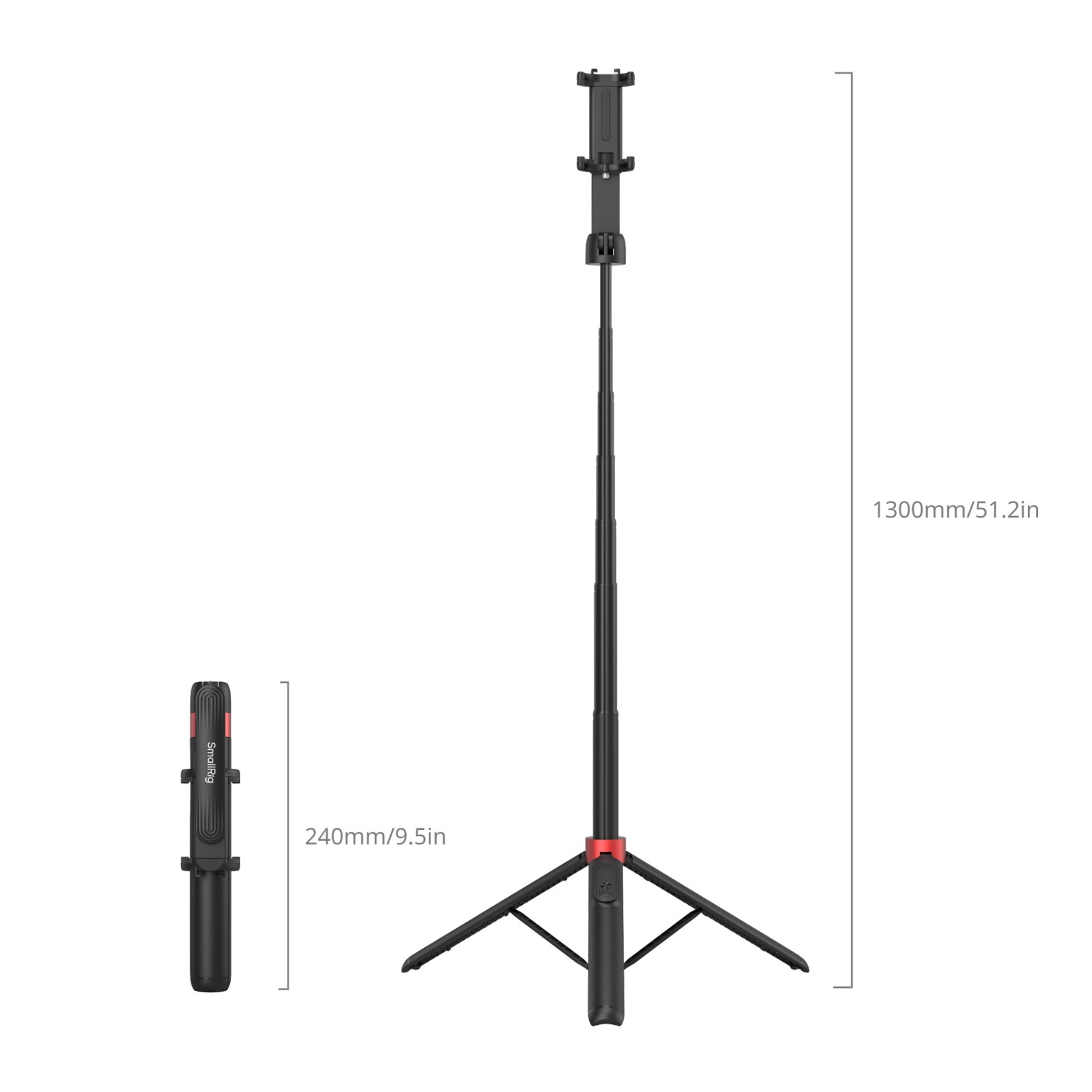 El palo selfie portátil SmallRig Tripod ST-25 Black 4729 cuenta con un diseño versátil 2 en 1 que combina las funciones de un palo selfie y un trípode con una longitud ajustable de 370 mm a 1300 mm. La pinza plegable para el teléfono es compatible tanto con iPhone como con Android y ofrece una amplia compatibilidad. Gracias a la rosca de 1/4"-20 y al soporte frío integrado en la pinza para el teléfono, permite ampliar fácilmente el equipo para conectar accesorios, como micrófonos e iluminación, y ampliar así las posibilidades fotográficas. Además, el producto se suministra con un mando a distancia Bluetooth recargable que garantiza una conexión inalámbrica estable con un alcance efectivo de hasta 10 metros, lo que proporciona a los usuarios una mayor libertad de movimiento al fotografiar. El soporte para el teléfono ofrece una rotación de 360°, mientras que el brazo de soporte permite ajustar el ángulo en un rango de 180° para adaptarse a una amplia gama de ángulos de disparo. Además, la base del trípode está equipada con un botón de un solo clic para un ajuste rápido y sencillo. Se pliega cómodamente hasta alcanzar unas dimensiones compactas de tan solo 60,0 x 30,0 x 240,0 mm, por lo que es ideal para viajar o para aventuras al aire libre.