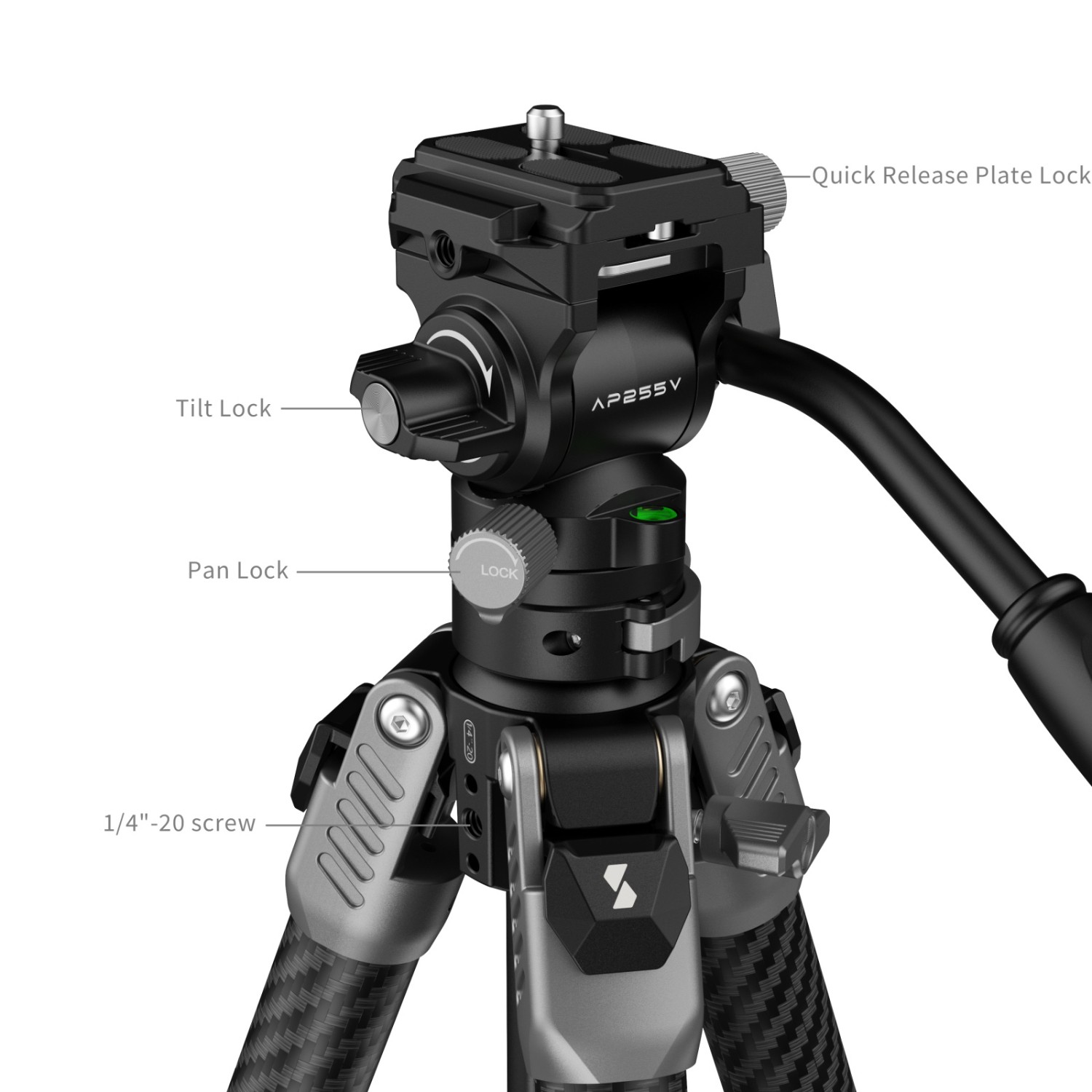 El trípode de vídeo portátil de fibra de carbono SmallRig AP255Pro 5477 es un trípode ligero diseñado especialmente para videógrafos que viajan. Con un diámetro máximo de las patas de 25,5 mm (1 pulgada) y una estructura de 5 secciones, ofrece una portabilidad excepcional: se puede extender hasta 160 cm / 63″ mediante la columna central y plegar hasta tan solo 52 cm (20,5 pulgadas). Con un peso de tan solo 1,5 kg (3,3 lb), es ideal para grabar mientras se viaja.