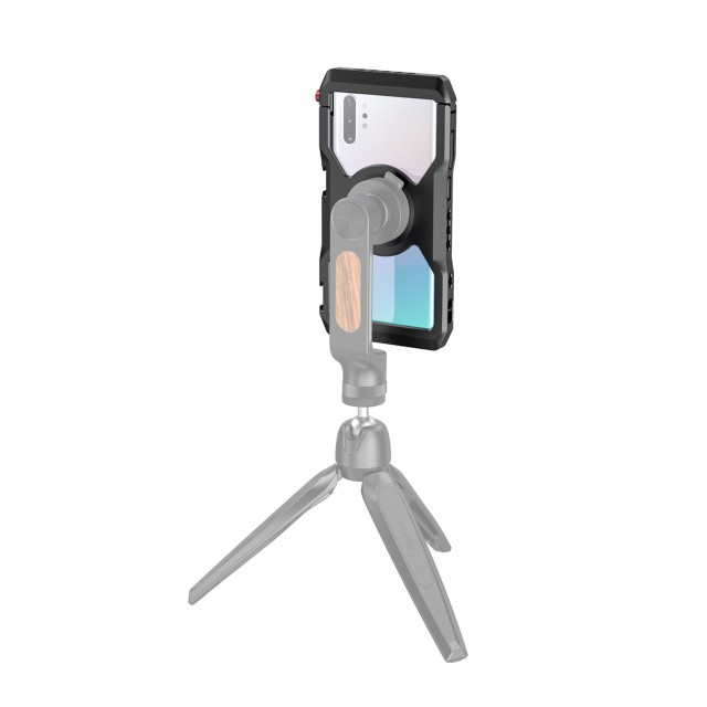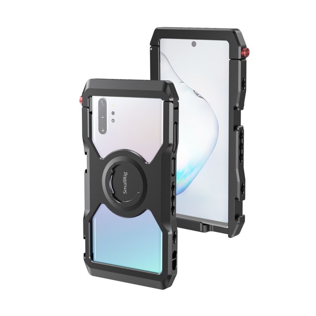 El SmallRig Samsung NOTE10+CAGE Professional Edition CPS2454 está diseñado para proteger tu Samsung Note10+ y permitir la conexión de accesorios adicionales para fotografía y grabación de vídeo con el móvil, retransmisiones en directo, entrevistas, vlogs, etc. Está equipado con dos zapatas y varios orificios roscados de 1/4"-20 para montar diversos accesorios, como micrófonos, luces LED, trípodes, etc., y admite la captura tanto horizontal como vertical. Es compatible con el asa lateral de aluminio SmallRig para la jaula de smartphone HSS2424, para grabar a mano alzada, y con la abrazadera para cable SmallRig para la jaula de móvil BSC2390, para sujetar el cable durante la grabación. Las almohadillas de goma integradas ayudan a amortiguar los golpes y evitan que el teléfono se raye. También cuenta con un orificio para la correa de muñeca. El sistema de apertura y cierre rápido permite abrir y cerrar la jaula con rapidez.