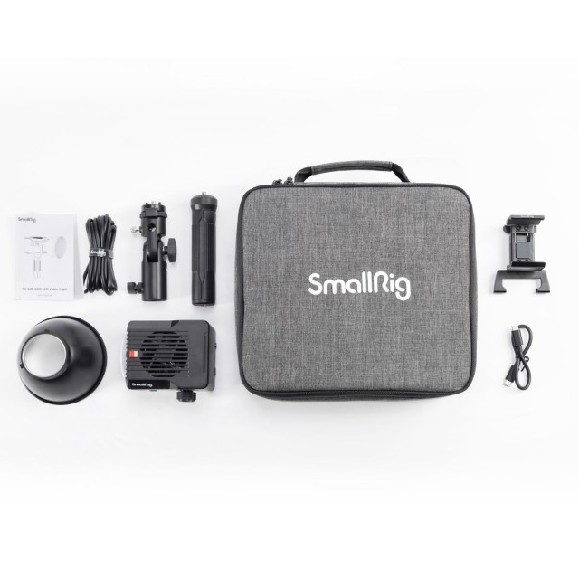 La luz de vídeo LED COB SmallRig RC 60B 4376 es la nueva generación de luces de vídeo LED COB lanzada al mercado por SmallRig. Gracias a un nuevo sistema de control de alimentación y refrigeración desarrollado internamente, esta nueva luz LED cuenta con una batería integrada que puede funcionar durante 45 minutos a máxima potencia, manteniendo unas dimensiones compactas y un peso reducido. El cuerpo principal está fabricado en PC+ABS ignífugo de clase V0 y cuenta con una base metálica, lo que reduce el peso en un 30 % y garantiza una gran durabilidad durante el funcionamiento. El producto pesa solo 650 g, o aproximadamente 1,1 kg con el asa y el minisoftbox D30, lo que hace que el LED sea adecuado para la fotografía y la grabación de vídeo en movimiento. La iluminación de 1 m/5600 K (fuente de luz desnuda) alcanza los 2670 lux y los 11 200 lux en combinación con el mini hiperreflector de 45°. Los indicadores avanzados permiten una reproducción más precisa del color y de los espectros solares: el CRI alcanza un valor de 97+, el TLCI de 98+, el SSI medio de 89, el TM-30 Rf de 96 y el TM-30 Rg de 100. Los botones independientes para ajustar CCT/INT y la pantalla LED de 1,3" ayudan a configurar los parámetros de la luz de forma precisa y rápida. Este artículo está equipado con accesorios para el control de la luz (hiperreflector en miniatura/softbox en miniatura opcional), accesorios de montaje (soporte/asa de la luz), accesorios de alimentación (soporte opcional para batería externa y cable USB-C a USB-C de 20 cm) y una bolsa de transporte, lo que lo convierte en una solución integral que satisfará tus requisitos de calidad de luz, portabilidad, alta eficiencia, control preciso de la luz, fácil instalación, larga duración de la batería, etc.