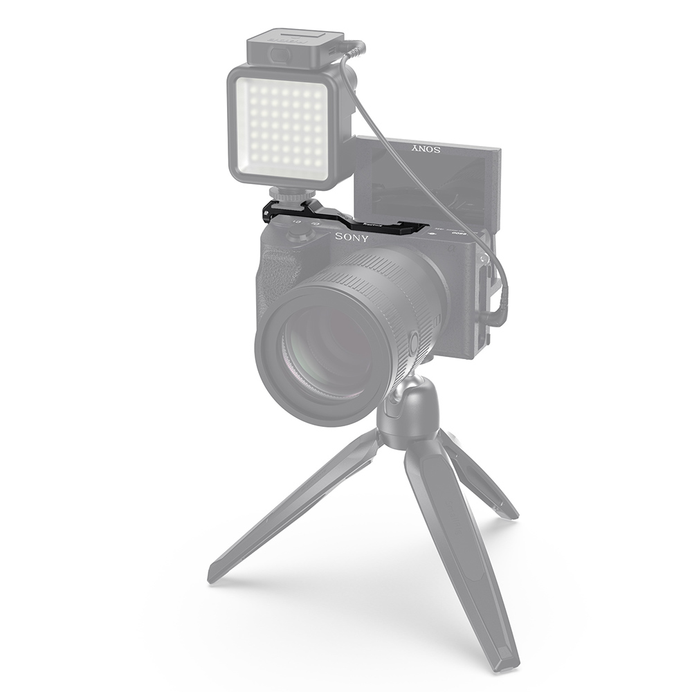 El BUC2496 está diseñado para permitir desplazar el soporte del pie de la cámara desde la parte superior hacia el lado derecho para colocar un micrófono o una luz, sin interferir con la pantalla abatible de la cámara Sony A6600. El adaptador se instala en el soporte de la cámara y en la ranura para la correa mediante un tornillo M2,5 en el lado derecho, para evitar que se tuerza. Está equipado con una almohadilla de goma que evita los arañazos. En el lateral del adaptador hay una abertura para una correa de mano o de hombro. El adaptador de zapata resulta especialmente útil al grabar desde la parte delantera de la cámara para vlogs o selfies. Además, también puede utilizar el adaptador de zapata con la montura L para la cámara Sony A6600 LCS2503.