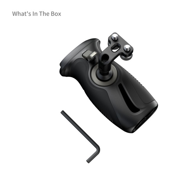 El mango lateral giratorio con tornillos de 1/4"-20 5194 cuenta con la posibilidad de girar 360° con un solo toque para un ajuste continuo del ángulo durante la toma de fotografías. Ofrece versátiles opciones de ampliación gracias a varias interfaces de montaje, incluyendo orificios de posicionamiento de 1/4"-20 para mandos a distancia (ID 3902) y brazos mágicos (ID 3873), así como una zapata fría para accesorios como soportes para monitores (ID 2905B), micrófonos (ID 3487), luces de vídeo (ID 3286B) y el micrófono DJI Mic 2.