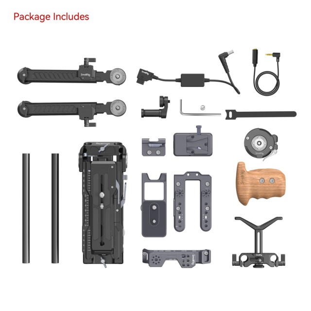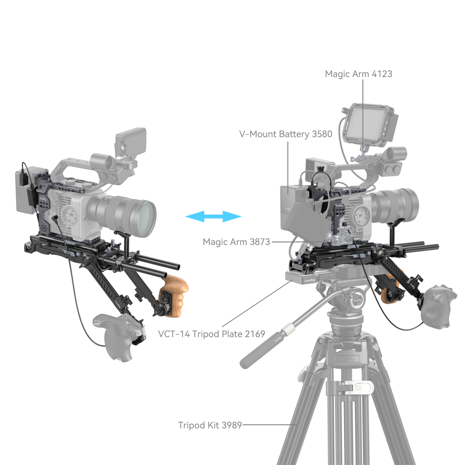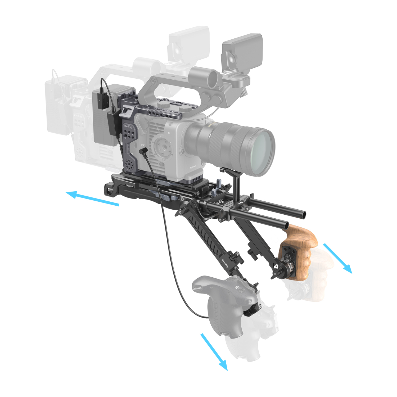 El kit SmallRig Shoulder Rig Kit para Sony FX6 4125B está diseñado para ofrecer una solución cómoda y práctica para grabar con la cámara colgada del hombro. Se compone del kit de jaula Cage Kit para Sony FX6 4124, la almohadilla para el hombro Shoulder Pad Pro 2837B, el brazo extensible 1870, el adaptador de rosca para empuñadura 3403, un agarre de madera izquierdo 1891, un adaptador para fijar la pantalla LCD 1831, un soporte para el objetivo 2681 y una barra de aleación de aluminio 1051.