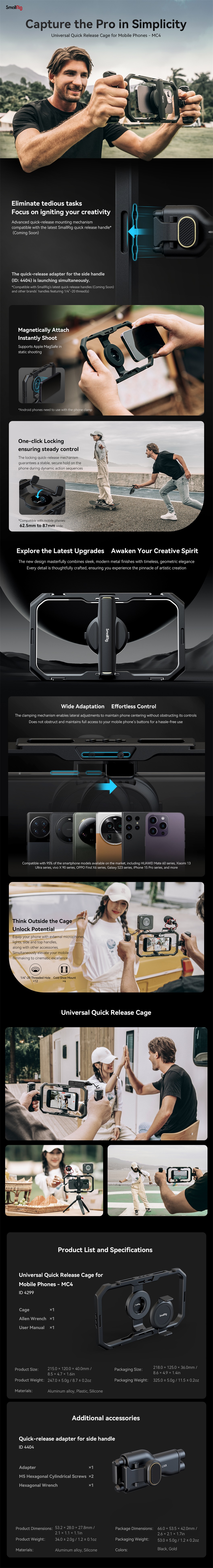 2. Diseñado para su uso con la jaula universal de fijación rápida SmallRig para teléfonos móviles 4299 y las jaulas de la serie iPhone 15.