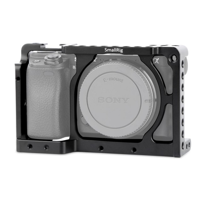 Con la cámara dentro de la jaula, seguirás teniendo acceso a la ranura para la tarjeta SD, al compartimento de la batería y a todos los controles de la cámara. El soporte para zapata integrado sirve para acoplar accesorios ligeros, como un micrófono, un soporte para EVF y otros. El orificio roscado de 1/4''-20 en la parte delantera permite acoplar una microvarilla de 15 mm con rosca de 1/4'' 915 para el enfoque posterior. Para fotografiar a mano alzada, una buena opción es añadir una empuñadura superior. Esta jaula también es compatible con la empuñadura de madera Sony A6500 1970. Permite acoplarle una abrazadera para cable HDMI 1822 para proteger el puerto HDMI.