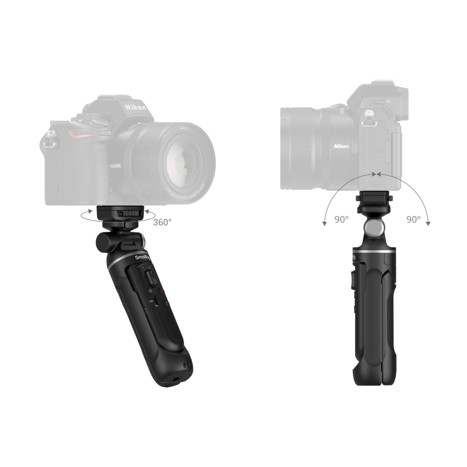 Esta empuñadura se fija a la cámara mediante tornillos de 1/4"-20, y las almohadillas de goma del soporte evitan que se raye la cámara. También se puede convertir en un trípode y sostener la cámara sobre una superficie de trabajo durante retransmisiones en directo o grabaciones. Con una capacidad de carga de 1,5 kg (3,3 lb) cuando no está extendido y de 0,8 kg (1,76 lb) cuando está extendido, la empuñadura ofrece un soporte estable para diversos modelos de cámaras. El control remoto está equipado con un puerto de carga USB-C que permite una carga completa en 2,5 horas, lo que garantiza hasta 40 horas de uso. Además, se puede actualizar a través de la aplicación SmallRig Up para una mayor compatibilidad con las cámaras.