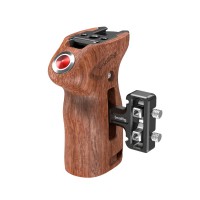 La empuñadura lateral roscada SmallRig con disparador remoto Start/Stop 3323 está diseñada para ofrecer un control cómodo de la grabación Start/Stop y permitir así un rodaje estable y cómodo. La empuñadura de madera «todo en uno», de diseño ergonómico, mejora la experiencia de sujeción. Se fija firmemente a la jaula mediante dos roscas de 1/4"-20 y altura ajustable. Su parte superior está equipada con orificios con roscas de 1/4"-20, 3/8"-16 y una zapata fría para los soportes de monitor 2904 y 2905.