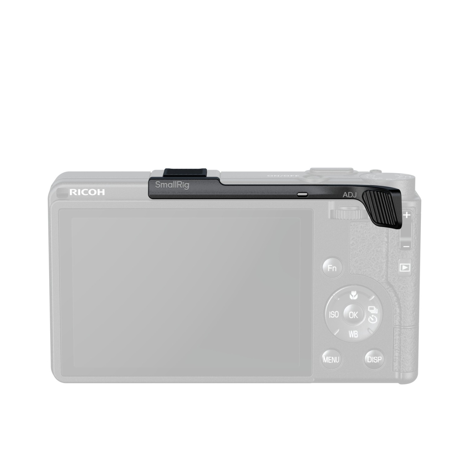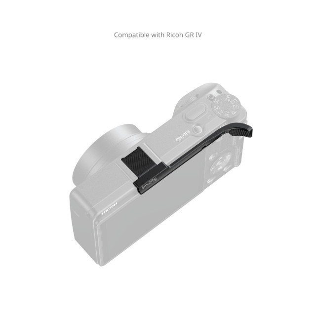 El SmallRig 5688 Thumb Grip para la Ricoh GR IV es un accesorio ligero que se acopla a la zapata de la cámara y mejora el agarre y el manejo con una sola mano gracias a su cómodo reposapulgares cóncavo, que no obstaculiza el acceso a los controles de la cámara.