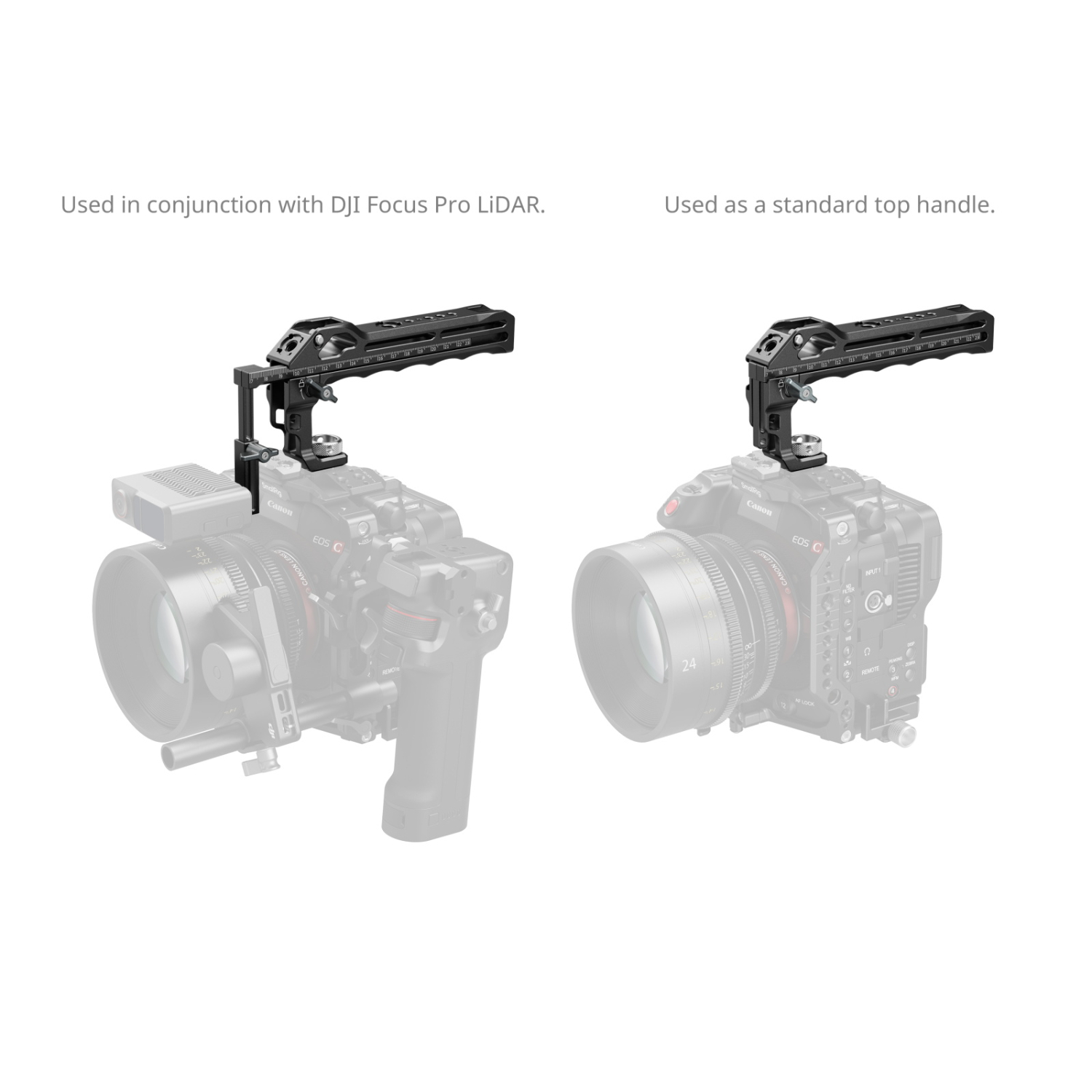La empuñadura superior SmallRig para DJI Focus Pro LiDAR 5236 está diseñada para mejorar la experiencia de enfoque con el DJI Focus Pro LiDAR. Su sistema integrado de guías telescópicas permite ajustar el módulo LiDAR en vertical y en horizontal para colocarlo con precisión cerca de la parte delantera del objetivo, lo que reduce significativamente el paralaje y mejora la precisión del enfoque automático.