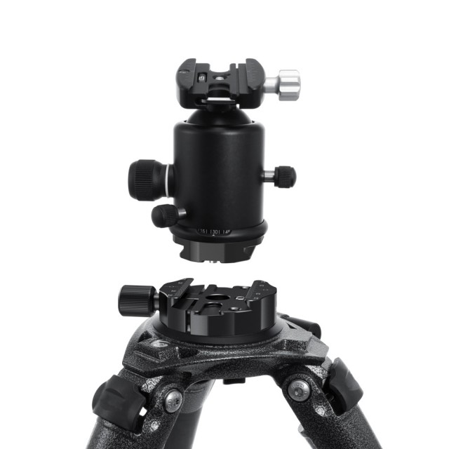 2. Abrazaderas tipo Arca-Swiss con placa que permiten cambiar rápidamente entre diferentes cabezales.