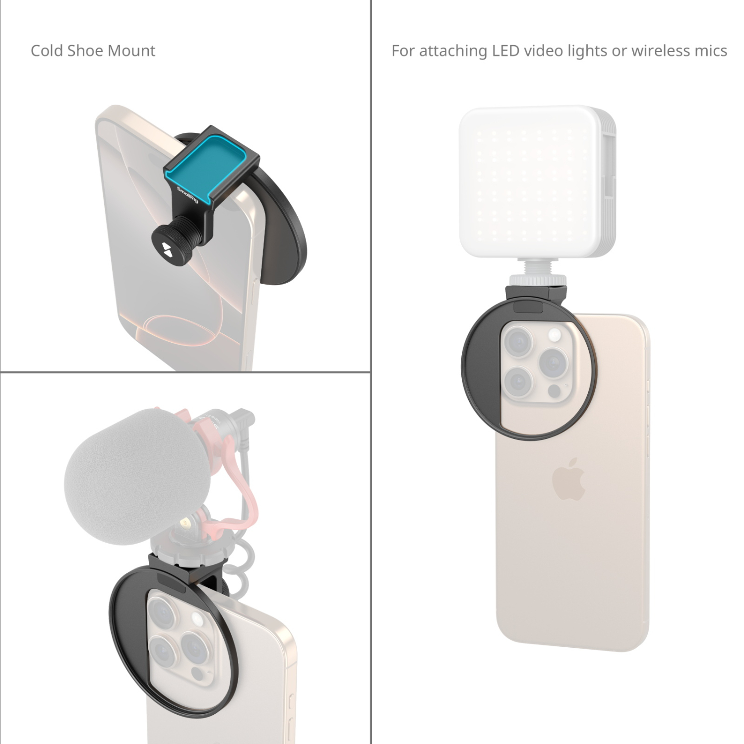 1. Compatible con una amplia gama de objetivos para cámaras de teléfono, para su uso con filtros de rosca de 67 mm o con luces LED anulares para vídeo SmallRig con rosca de 67 mm.