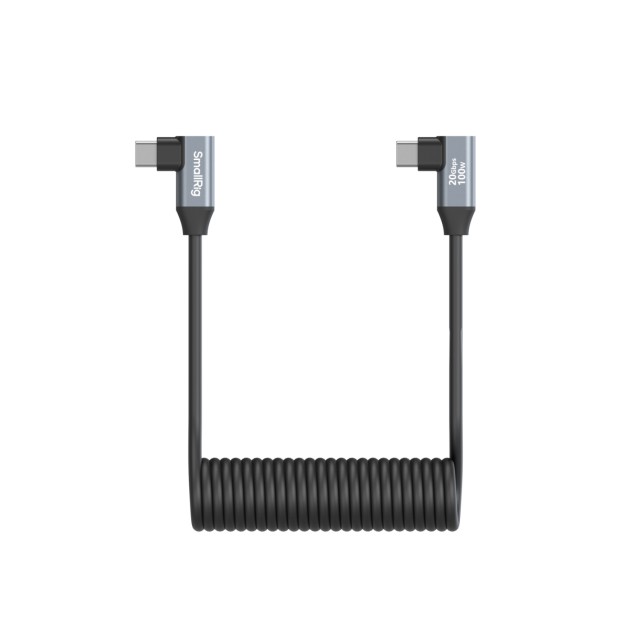El cable de datos SmallRig USB-C (en ángulo) a USB-C (en ángulo) en espiral (4793 ) está diseñado para la transferencia de datos a alta velocidad y la carga rápida. Admite una velocidad de transferencia de datos de 20 Gb/s y una carga rápida de 100 W, lo que garantiza un rendimiento óptimo para todos tus dispositivos compatibles. El cable cuenta con un diseño flexible en espiral con una bobina elástica de TPU que evita que se enrede y mantiene tu equipo compacto y ordenado. Los conectores de aleación de aluminio garantizan una larga vida útil, por lo que es fiable para un uso frecuente.