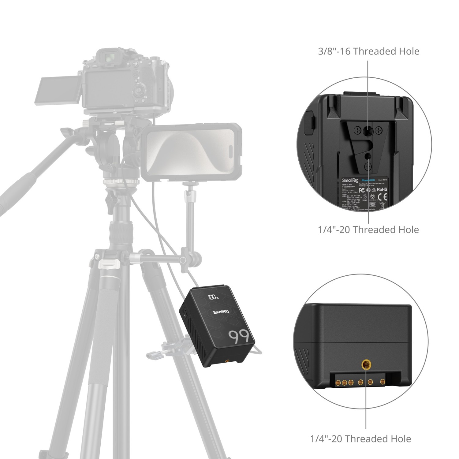 La SmallRig VB99 SE mini V Mount Battery 4608 es una batería compacta con montura en V y un diseño altamente integrado que reduce eficazmente el tamaño total de la batería, lo que la hace ligera y fácil de transportar. Está equipada con celdas LG 18650 de grado A de alta velocidad, que garantizan una capacidad precisa, un rendimiento cíclico y una estabilidad excepcional. Está diseñada para cumplir con normas internacionales como MSDS / UN38.3 / IEC 62133 / UL2054 / UL 62368, y ha obtenido certificaciones que incluyen FCC / CE / RoHS / ISED / RCM / PSE / KC, lo que garantiza a los usuarios un funcionamiento seguro y fiable. La batería está equipada con puertos BP, D-Tap, 8V-OUT DC, 12V-OUT DC, USB-C y USB-A, que ofrecen una amplia gama de interfaces para alimentar varios dispositivos simultáneamente. Entre ellos se incluyen cámaras, cámaras sin espejo, monitores, transmisores, luces de vídeo, teléfonos inteligentes, tabletas, ordenadores portátiles y otros dispositivos, lo que proporciona una alimentación integrada y eficaz para todas tus necesidades.