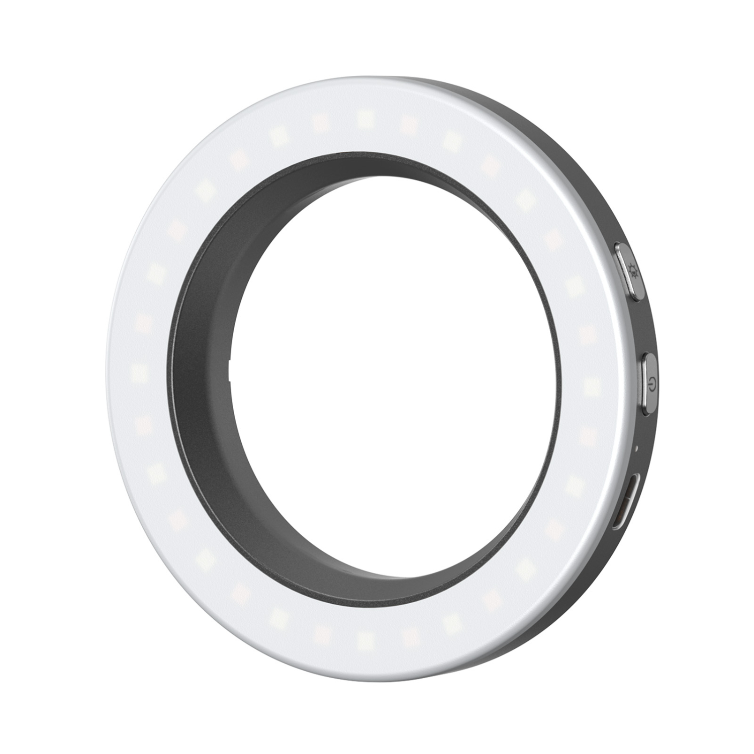 La SmallRig Vibe P30 67mm Ring LED Video Light 4873 es una luz de relleno circular ligera diseñada para un uso versátil. Se puede fijar fácilmente a la funda o a la carcasa del teléfono mediante un adaptador roscado de 67 mm, o bien acoplarse rápidamente al teléfono con un soporte para móvil. Además, se puede instalar directamente en un objetivo de cámara de 67 mm, por lo que resulta adecuado para diversos escenarios fotográficos. Compacta y ligera, la lámpara recuerda a un polverín compacto de mujer, por lo que es fácil de transportar.