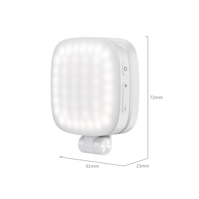 Esta luz está equipada con un cabezal miniatura de dos ejes integrado que permite un ajuste de giro de 360° y de inclinación de 270°, lo que garantiza una cobertura completa de 360° con la luz de relleno. Es compacta y ligera, recuerda a un polvera compacta de mujer, por lo que es fácil de transportar. ¡El espejo de cristal incorporado convierte al instante el dispositivo en un práctico espejo de maquillaje!