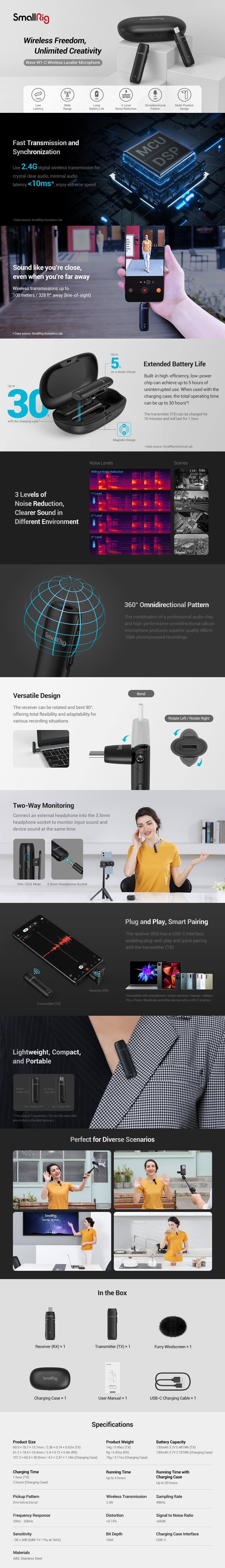 SmallRig Wave W1-C Wireless Lavalier Microphone 3495