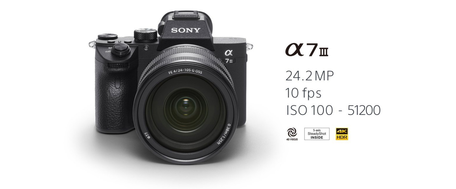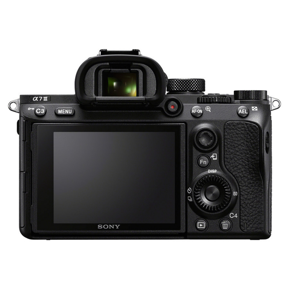 La Sony Alpha A7 Mark III es la nueva generación de una cámara compacta de sistema (CSC/sin espejo) pensada para el reportaje, que, gracias a su velocidad y calidad de imagen incluso a sensibilidades muy altas, resulta ideal no solo para fotógrafos de reportaje y deportivos, sino también para fotógrafos documentales, retratistas, paisajistas y muchos otros fotógrafos, tanto aficionados como profesionales. Está equipada con un sensor Sony Exmor R CMOS Full Frame de 24,2 megapíxeles con estabilización de cinco ejes y un rango de sensibilidad nativo de ISO 100 a ISO 51 200. El motor de procesamiento de imagen BIONZ X procesa los datos capturados a una velocidad extrema, lo que permite fotografiar con un rango de sensibilidad ampliado de ISO 50 - 204 800, procesar vídeo en resolución 4K y capturar ráfagas de acción rápida a una velocidad de hasta 10 fotogramas por segundo, en combinación con un sistema AF híbrido con 693 puntos AF de detección de fase y 425 zonas AF de detección de contraste. La cámara cuenta con una ergonomía excelente y controles personalizables con una serie de botones configurables por el usuario. El visor electrónico OLED de 0,5" y resolución XGA ofrece una cobertura del 100 % de la imagen. En la parte trasera hay una pantalla TFT LCD táctil y abatible de 3" con una cobertura del 100 % del campo de visión. La conectividad con el entorno la garantiza el Wi-Fi (802.11b/g/n) con tecnología NFC Forum (tipo 3), Bluetooth 4.1, un conector SuperSpeed USB 3.1 Gen 1 (tipo C), un conector Micro HDMI (tipo D), un zócalo para múltiples interfaces con conector de sincronización, un conector de 3,5 mm para micrófono y un conector de 3,5 mm para auriculares. El compacto cuerpo de magnesio de la cámara es muy resistente, ligero y perfectamente sellado contra el polvo y el agua que gotea.