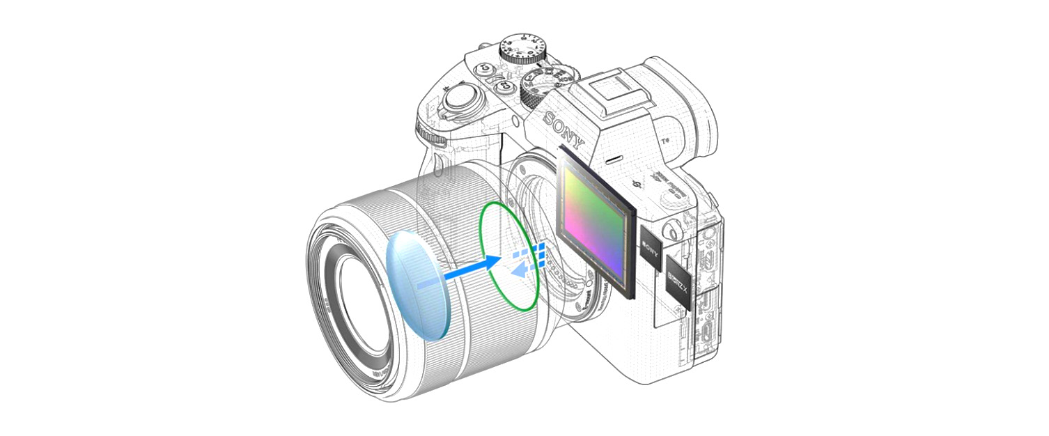 La cámara integra un innovador estabilizador de sensor que utiliza un marco estabilizado en cinco ejes, al que está fijado el sensor Sony Exmor R CMOS. Este marco gira, se inclina y se desplaza activamente en dos ejes, lo que compensa eficazmente las vibraciones y sacudidas que afectan negativamente al sensor de la cámara. En total, se eliminan hasta cinco tipos de vibraciones que provocan el desenfoque de las imágenes: las vibraciones por inclinación/rotación alrededor de los ejes X/Y, que se producen al fotografiar con una distancia focal más larga; las vibraciones en los ejes X/Y al fotografiar de cerca (incluida la macrofotografía); y las vibraciones por rotación alrededor del eje Z, que se producen en las tomas nocturnas al realizar panorámicas. La eficacia del estabilizador se consigue gracias a los nuevos giroscopios y sensores que, en colaboración con los algoritmos más recientes, evalúan correctamente la naturaleza de la vibración y la forma de eliminarla mediante comandos a las unidades de compensación electromagnéticas del sistema de estabilización. Según las mediciones de la CIPA, la eficacia del estabilizador es de 5 EV, lo que en la práctica significa que se puede fotografiar con tiempos de exposición 5 pasos más largos. De este modo, el estabilizador del sensor permite aprovechar al máximo la alta resolución del sensor (42,4 MP), incluso en situaciones en las que se fotografía con muy poca luz, como en las tomas nocturnas. El estabilizador del sensor de imagen permite estabilizar las vibraciones independientemente del objetivo montado, lo que supone una gran ventaja competitiva.