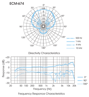 Micrófono direccional (supercardioide) de condensador electret ECM-674 con doble alimentación (fantasma o pilas AA)