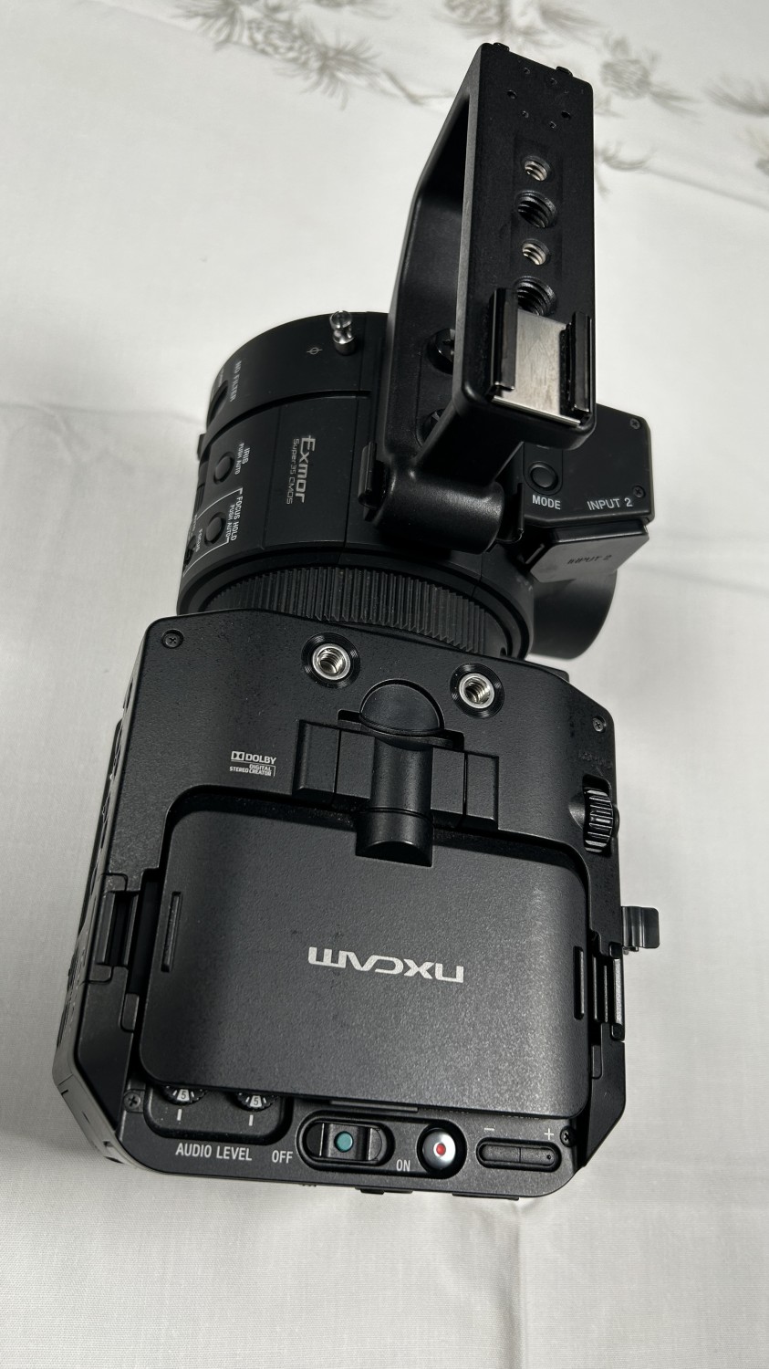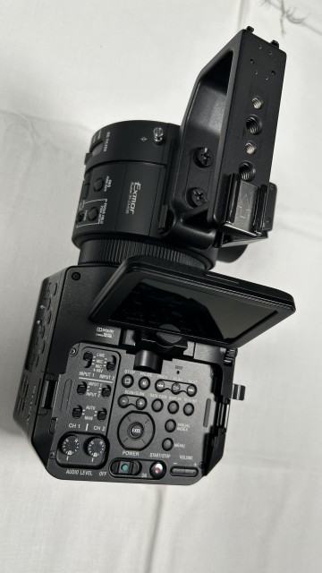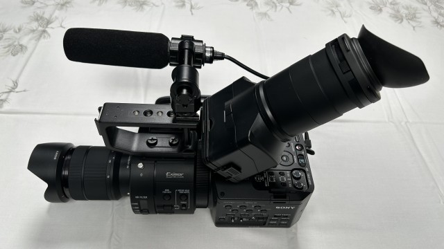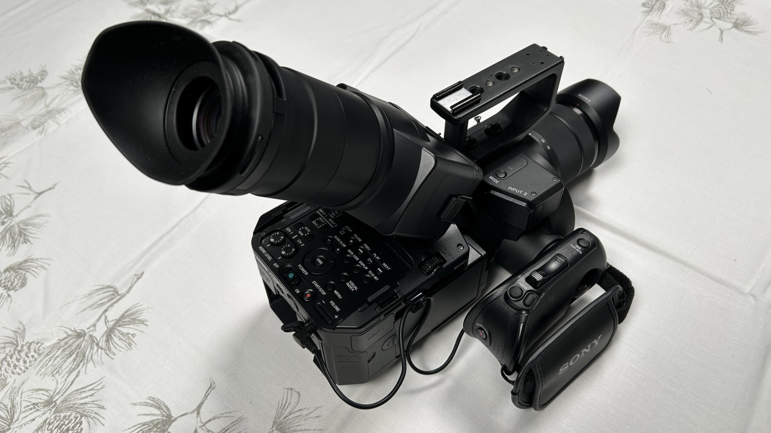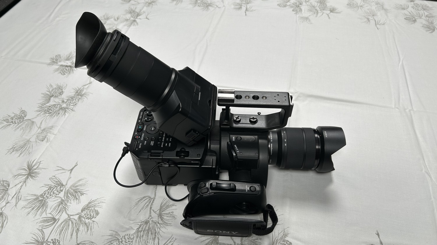Sony FS700 R versión 4K RAW (salida SDI; ¡la grabación interna es en HD!), DCI 4K 50p, 12 bits. Sensor Super 35. Autonomía de 120 horas. Con objetivo 28-70.