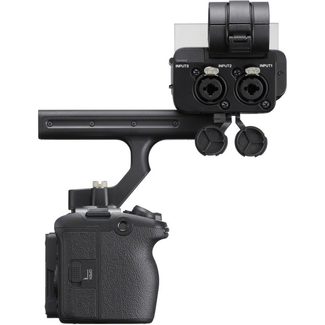 Sin la empuñadura XLR, los usuarios pueden monitorizar y grabar a través de los conectores de entrada y salida de 3,5 mm del cuerpo de la cámara. La zapata Multi Interface sigue estando presente y Sony fabrica numerosos accesorios que funcionan directamente con ella para la transmisión de audio.