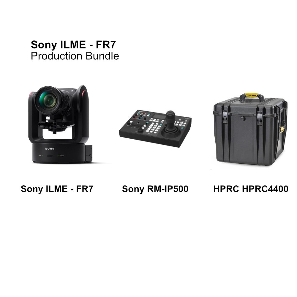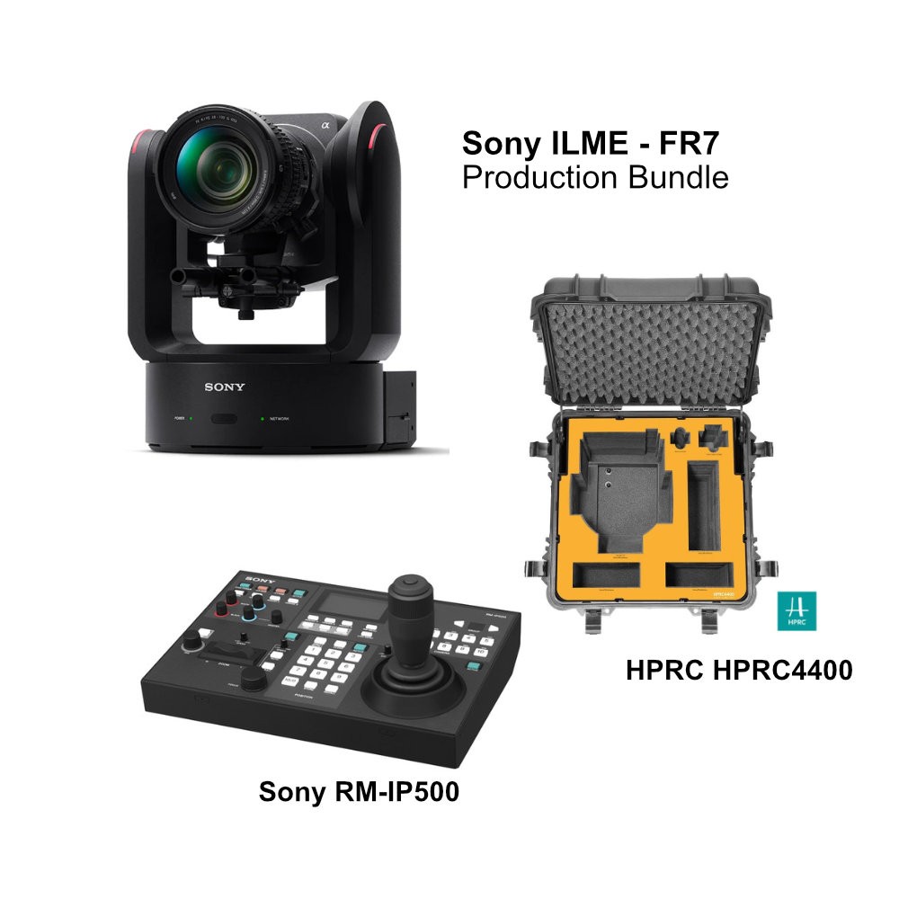Hazte con el kit de producción completo Sony ILME-FR7, que ofrece todo lo que necesitas para la retransmisión profesional y la creación de contenidos. Este kit incluye la cámara Sony ILME-FR7, el mando a distancia universal Sony RM-IP500/ACM y la resistente maleta rígida HPRC4400 para un transporte y almacenamiento seguros. Ideal para flujos de trabajo de producción fluidos en un kit todo en uno.