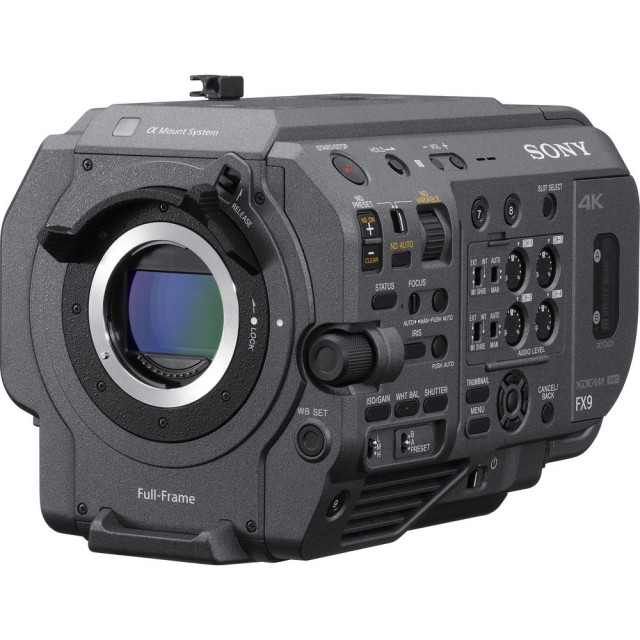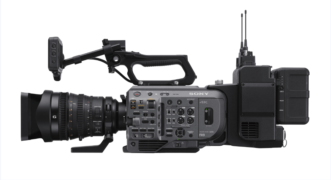 La FX9 incluye una zapata Multi-Interface (MI) integrada y viene con una batería BP-U35, un cargador de batería BC-U1A, un adaptador de CA con dos cables de alimentación, una tapa del cuerpo, un visor, un ocular, un mando a distancia y un cable USB. La PXW-FX9K también es compatible con la unidad de extensión XDCA-FX9, disponible por separado, que proporciona soporte tipo hombro ENG, funciones de red y una ranura para un receptor de audio inalámbrico opcional.