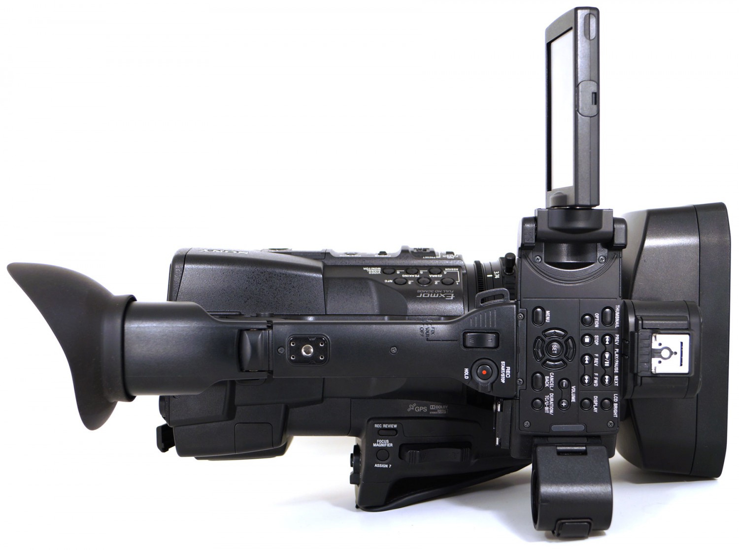 El objetivo Sony G tiene un rango de zoom de 25x con una distancia focal equivalente a 35 mm de 26 mm a 650 mm. Esto hace que el objetivo sea lo suficientemente versátil como para adaptarse a una amplia gama de situaciones de grabación, desde gran angular hasta teleobjetivo. Se incluyen anillos independientes de control manual, zoom y enfoque con topes y control del diafragma, y un mecanismo deslizante en el anillo de enfoque permite cambiar fácilmente entre el enfoque automático y el manual. El indicador de enfoque se puede visualizar incluso cuando se enfoca manualmente.