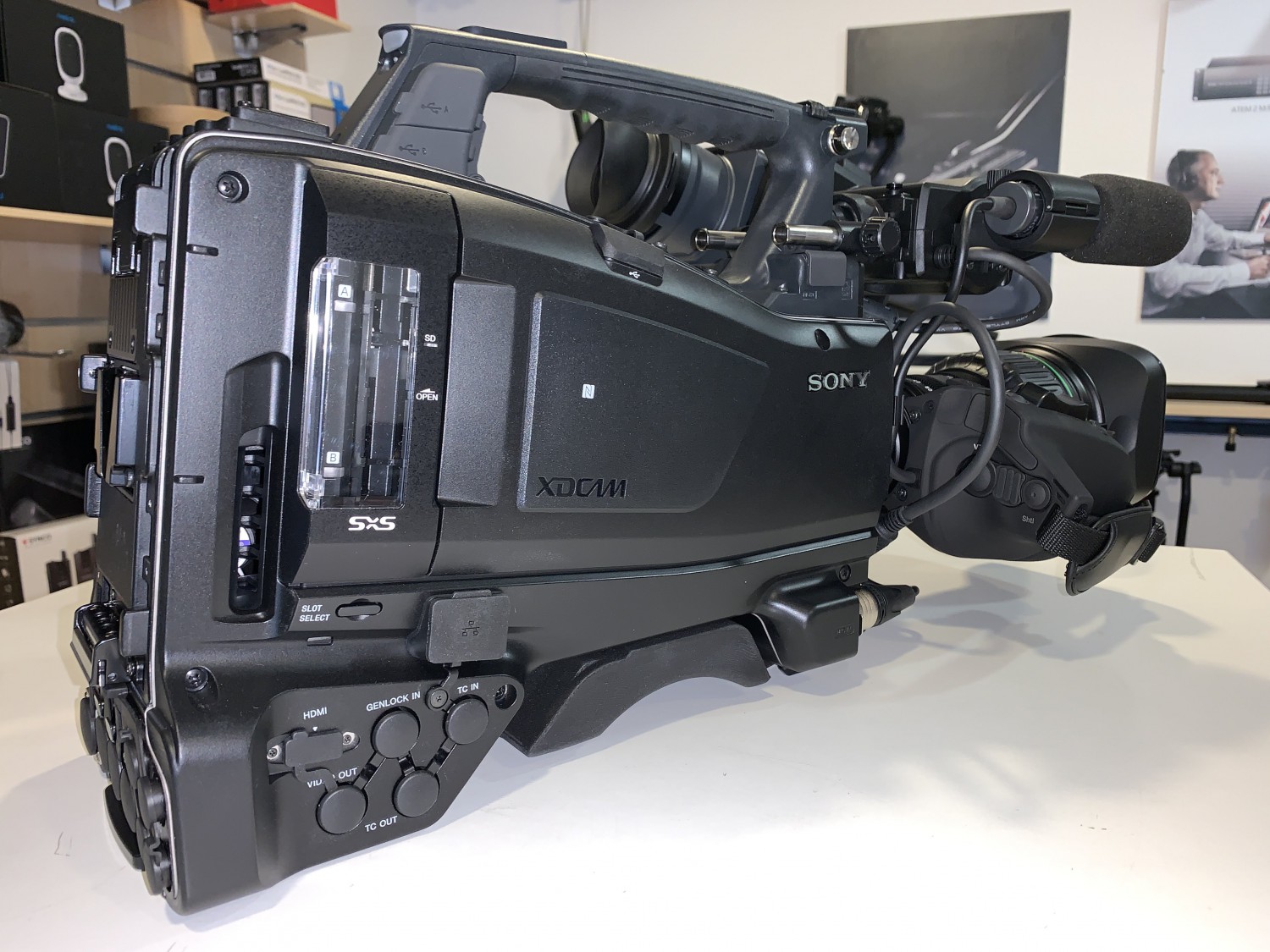 El cuerpo de la cámara está perfectamente equilibrado para una grabación desde el hombro con la máxima comodidad, incluso durante jornadas de trabajo de todo el día. Sony ha diseñado el cuerpo basándose en pruebas con los objetivos ENG más populares y lo ha equilibrado de tal manera que el peso del dispositivo recaiga sobre el hombro y no sobre la muñeca del camarógrafo. Por supuesto, el equilibrio se puede modificar desplazando el soporte para el hombro.